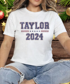 Bold and vibrant “Taylor 2024” print in patriotic red, white, and blue