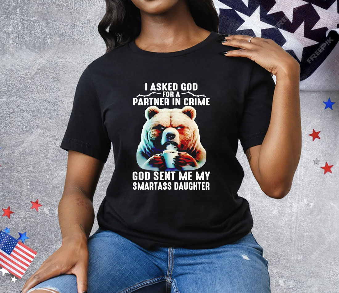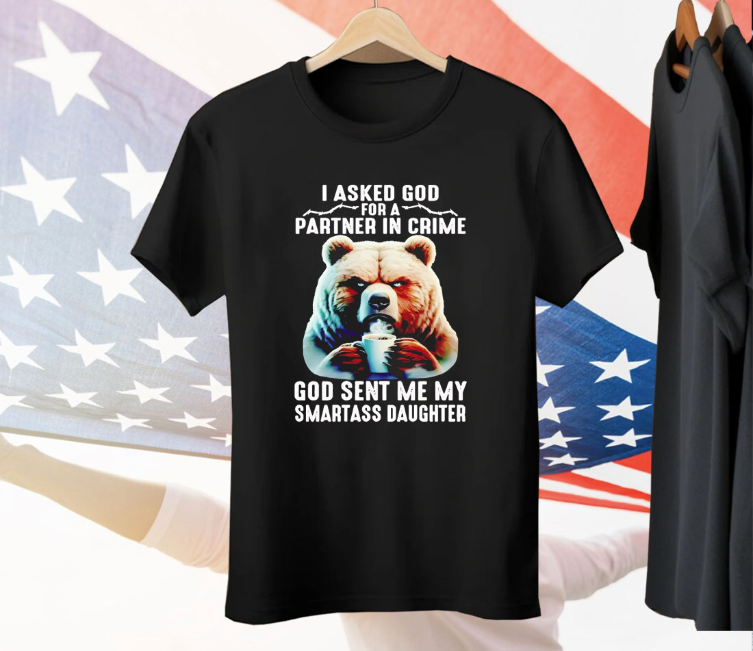 Bear I Asked God For A Partner In Crime God Smartass Daughter Tee Shirt
