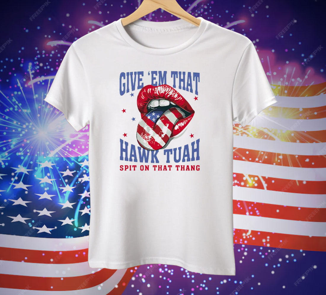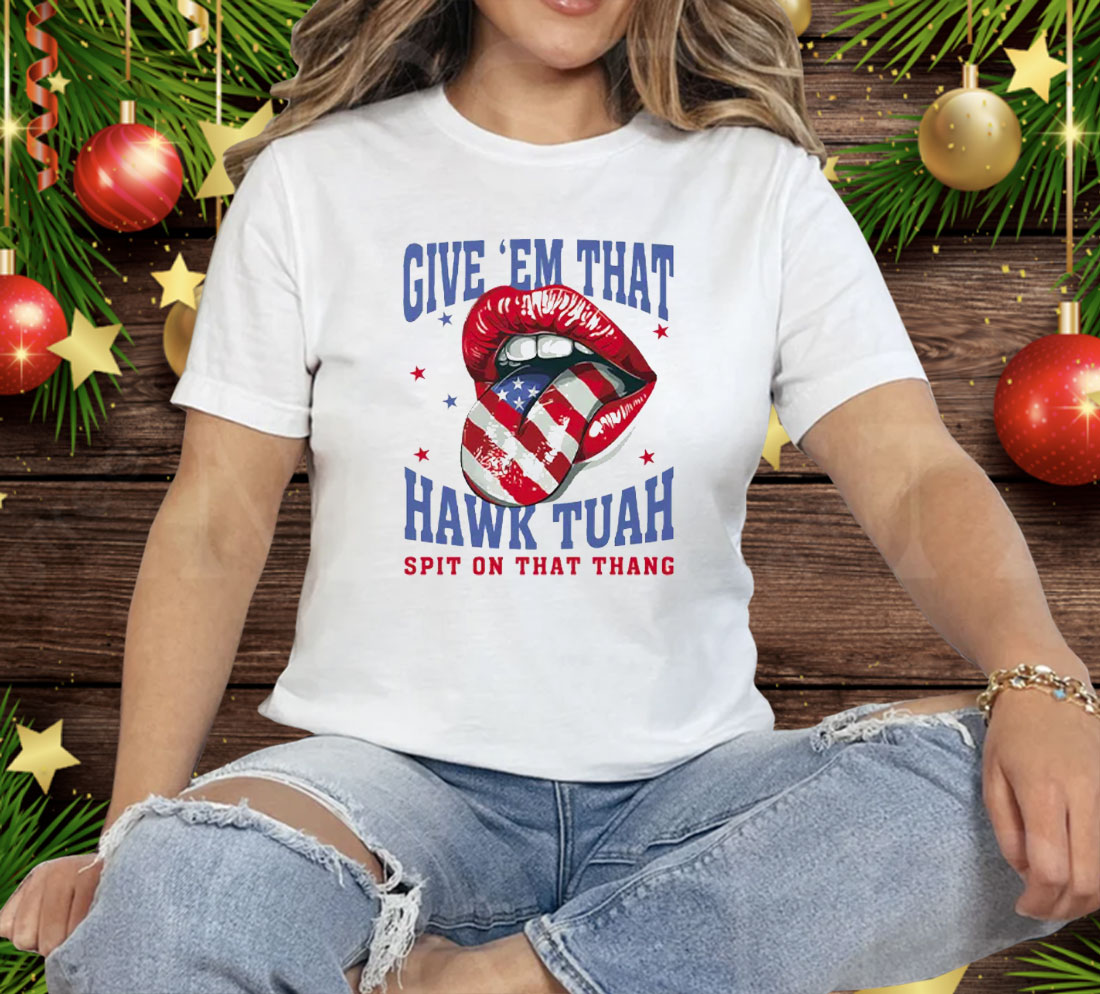 Give ‘Em That Hawk Tuah Spit On That Thang American Lips Tee Shirt