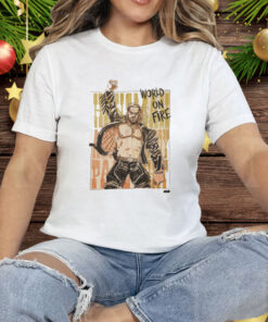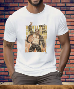 Unleash your inner Hangman with our electrifying “World on Fire” tee shirt, a testament to the enigmatic and rebellious spirit of AEW’s Adam Page.