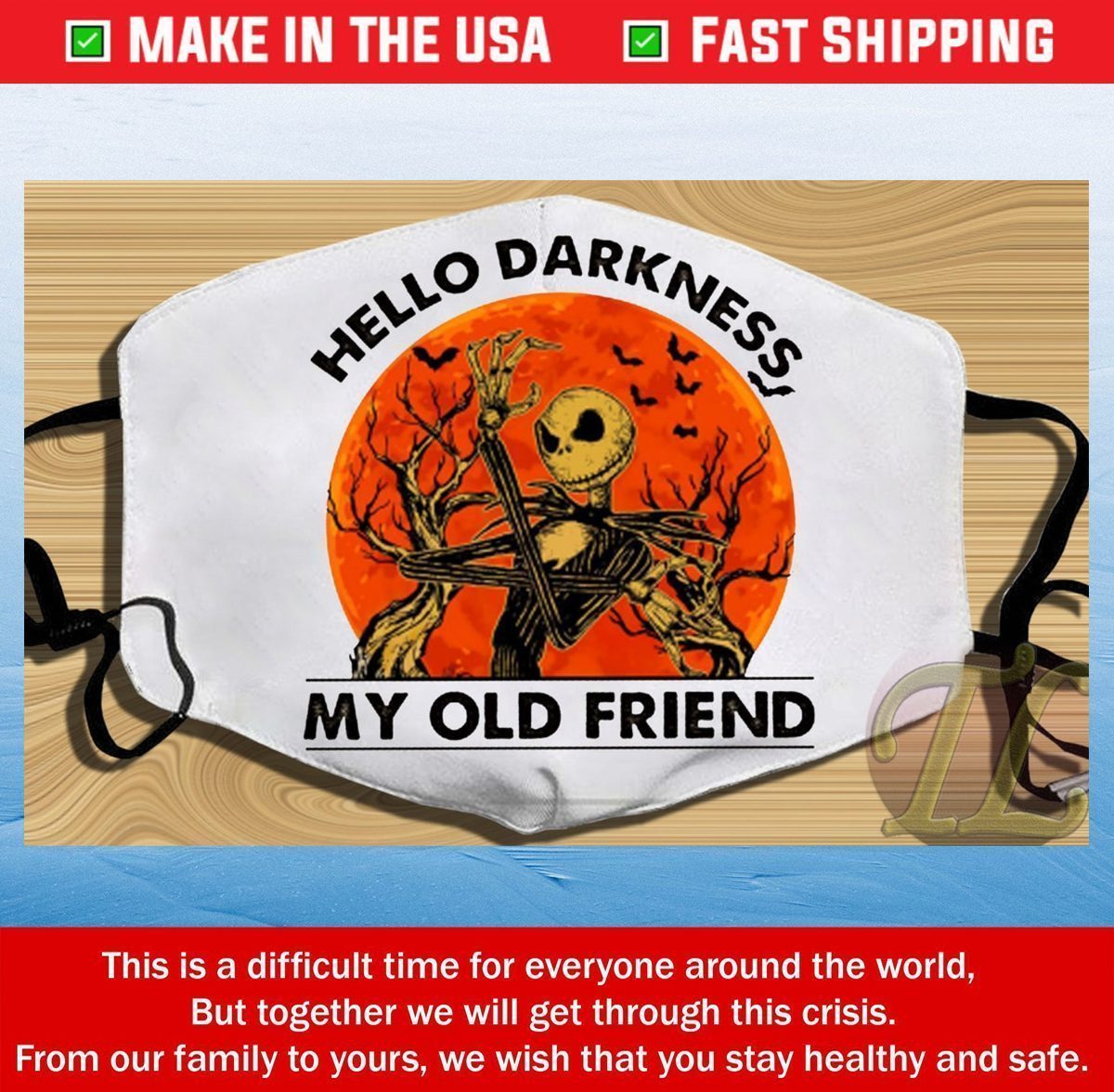 Hello darkness My Old friend Horror Happy Halloween Jack Skellington Cotton Face Mask