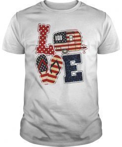 Love Camping USA Flag T-Shirt 4th of July Flip Flop Camper USA Flag Tee