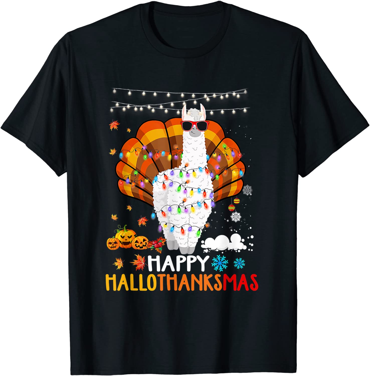 T-Shirt Llama Happy Hallothanksmas Halloween Thanksgiving Xmas