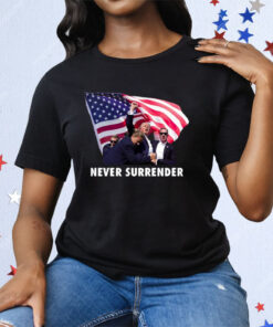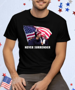 Order your Trump Shooting Never Surrender Tee Shirt today and let your patriotism shine through!