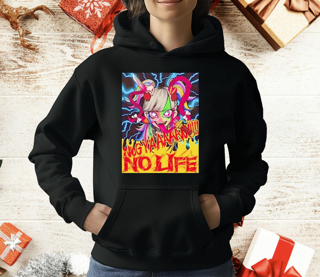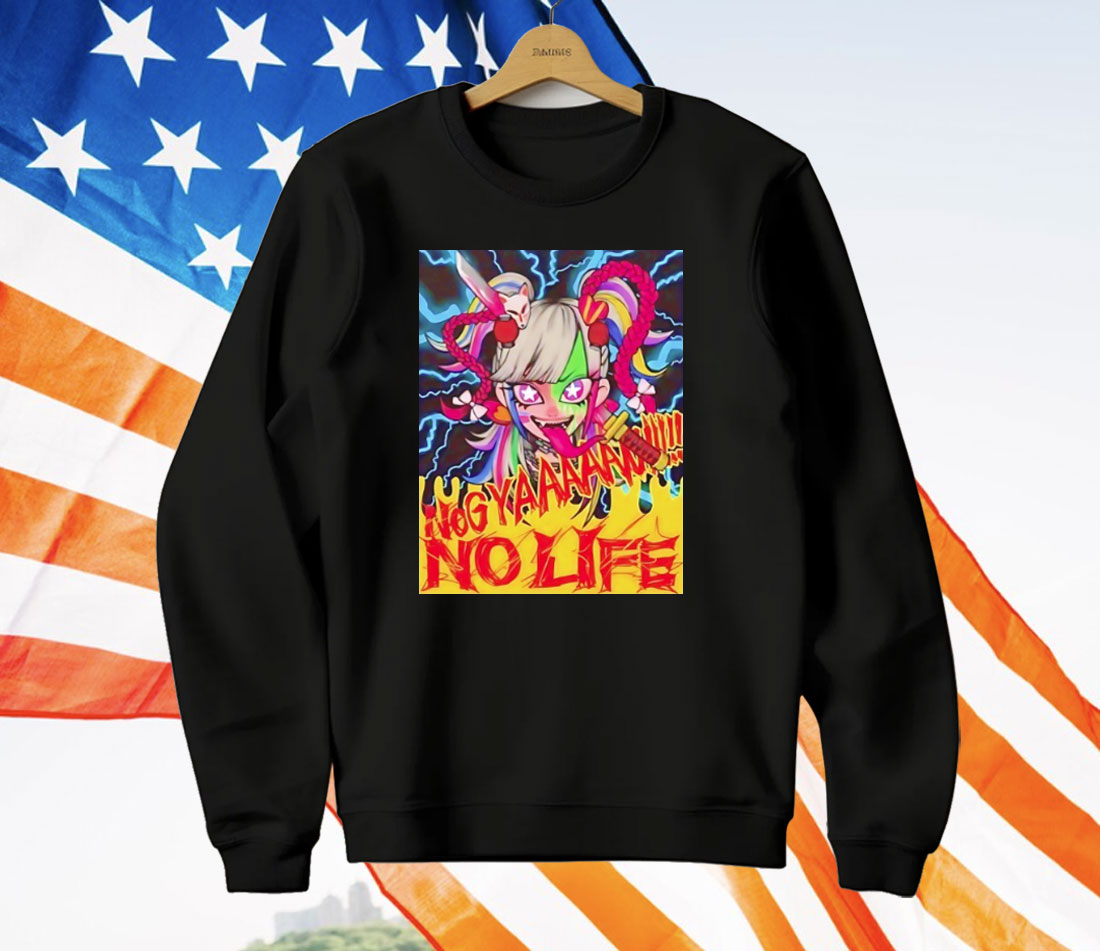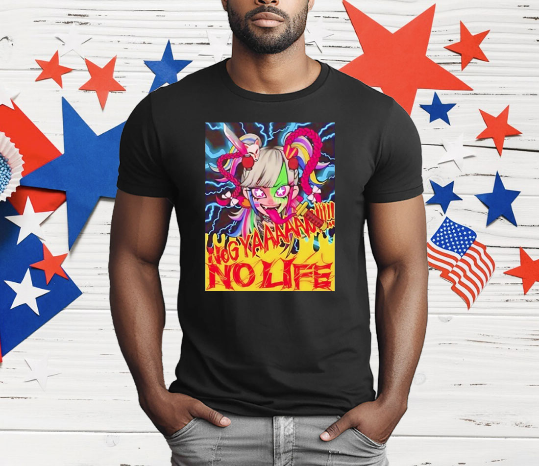 Graphic features Unagi Sayaka in a warped cartoon pose with “No Life” text in stylized font