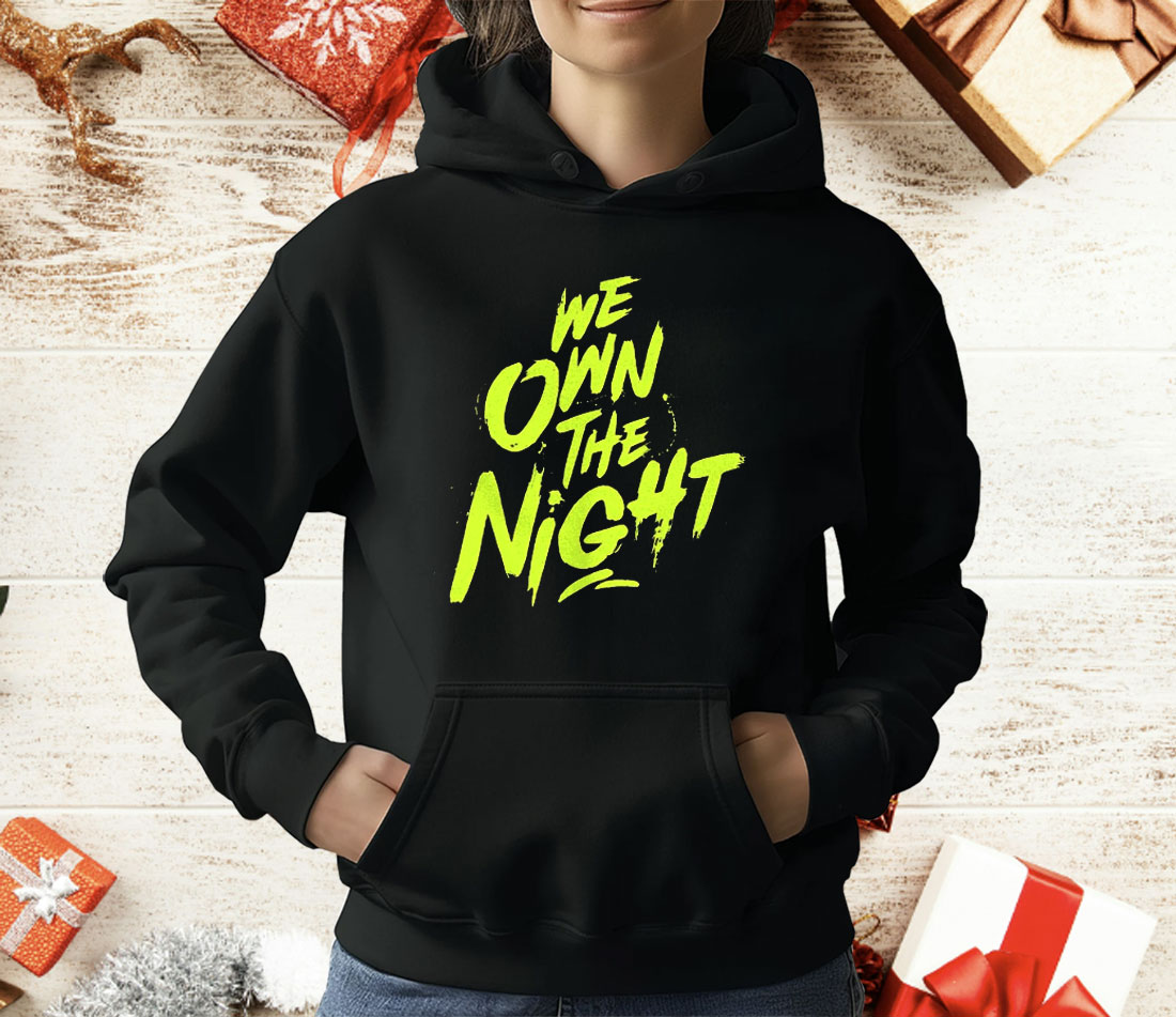 The design centers on the phrase “We Own The Night” in bold, high-impact font — either sharp and neon-glowing or gothic and dramatic, depending on your preferred vibe.