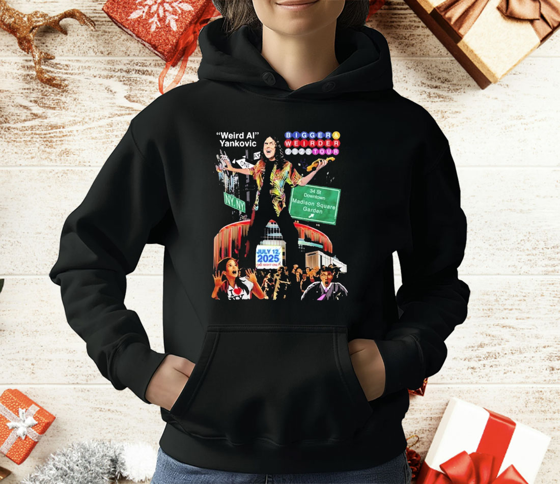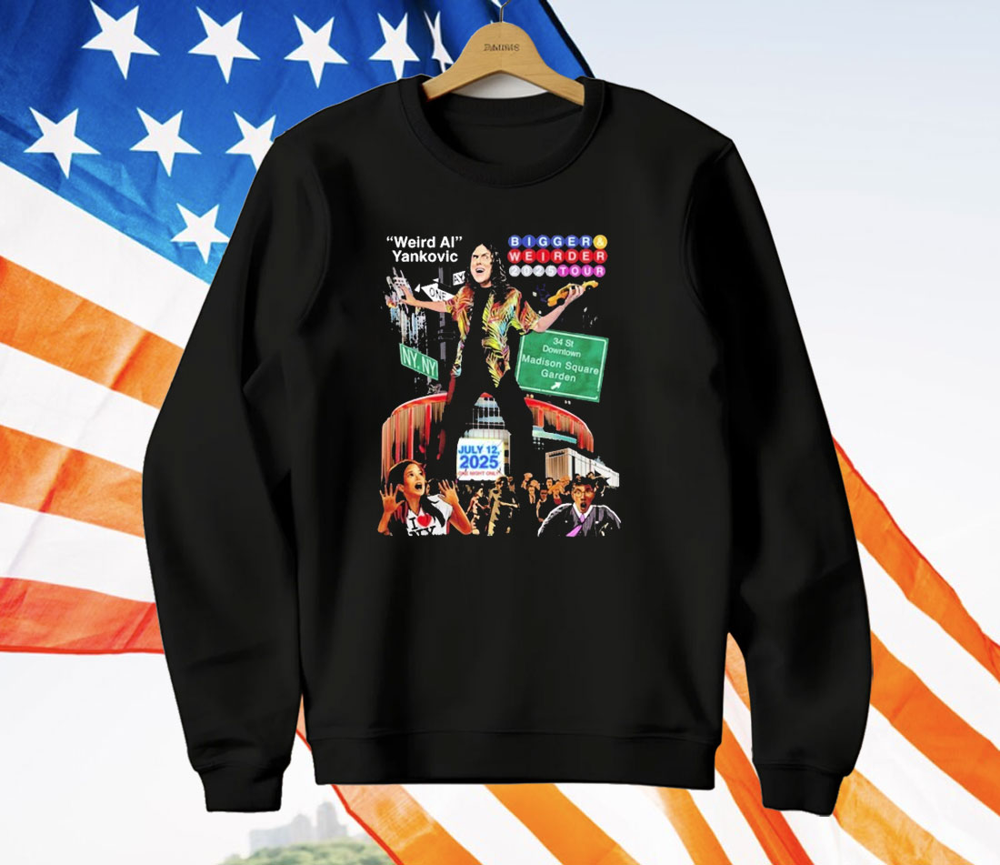 SEO Keywords: Weird Al Yankovic tour shirt, Madison Square Garden 2025 tee, Bigger Weirder tour merchandise, parody music fan apparel, unisex concert t-shirt, Weird Al live show shirt, collectible tour merch, musical comedy fan tee.